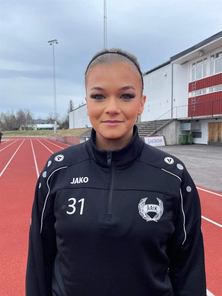 Isabelle Nordlund mer känd som " bella ". En målvakt som många fruktat i många år i Ångermanland. Bella har länge spelat fotboll på hög nivå och alltid varit en topp spelare i det lag hon representerat. Bella har sin skolning i BIK SK som hon spelade div.1 med, samt klubbar som HSK har hon spelat i och nu senast kommer hon från SDFF där hon spelade i elitettan. Men Bella lägger handskarna på hyllan och drar på sig rollen som utespelare i ÄAIK. Hon har redan gjort sin första match för ÄAIK där hon leverade från minut 1 med fin blick för spelet, hennes passningsspel samt hennes fin fina tillslag på bollen. Isabelle är en toppen tjej både på och utanför planen och jag är helt övertygad om att hon kommer vara en fantastisk tillgång för vårt lag. Från att ha stått mellan stolparna till utespelare i ÄAIK. Hur känns det? Det känns kul. Jag kombinerade länge att vara både utespelare och målvakt men hamnade tillslut i mål, så det känns kul att få se vad jag går för ute nu. Du har spelat/tränat med oss en stund nu. Varför valde du ÄAIK? Mitt huvudsakliga mål med fotbollen just nu efter att jag lagt handskarna på hyllan är att ha kul. Älandsbro har ett otroligt roligt och härligt gäng som gjorde att jag hamnade här. Förutom att du är en toppen tjej både på och utanför planen. Vad tror du att du kan tillföra vårt lag? En del skratt kanske, med tanke på att jag aldrig tänker innan jag pratar… Men utöver det tror jag kanske att jag kommer bidra med en krigarinställning och förhoppningsvis någon bra assist hehe Och Bella vad tror du.. Drar du flest gula kort eller drar du flest upp i krysset i år? Hmm svårt.. jag är känd för att vara en mjukis så gula kort brukar jag inte få, men samtidigt passar jag 9/10 också så.. men tror i krysset! Välkommen till oss Bella!